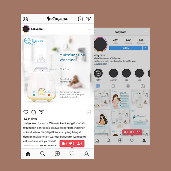 Babycare (not the actual brand) is a brand that provides baby care such as bottle warmer and breast pump. They wanted to gain more social media exposure. Content redesign is important since they use instagram as their main promotional platform. Clean and calm design is used because mothers always make sure they buy clean hygienic product for their baby. To gain more exposure, instagram posts are not just about the product but also tips for moms.